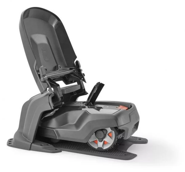 Az Automower® garázs megvédi a töltőállomást és a robotfűnyírót az eső és a nap káros hatásaitól. A csuklós tetőnek köszönhetően a kijelző és a billentyűzet könnyen elérhető az Automower® töltése közben. A kábelcsatlakozások könnyen elérhetőek.
